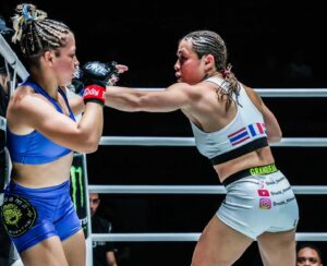 “โนแอล กรองด์ชอง” นักสู้หญิงแกร่งลูกครึ่งไทย – ฝรั่งเศส วัย 28 ปี คว้าโอกาสครั้งสำคัญ ในการพิสูจน์ตัวเองกับนักสู้ตัวท็อปของแรงกิง อย่าง “เดนิส แซมโบอันกา” นักสู้สวยสังหาร วัย 27 ปี จากฟิลิปปินส์ โดยจะวัดฝีมือกันภายใต้กติกาการต่อสู้แบบผสมผสาน (MMA) รุ่นอะตอมเวต (105 – 115 ป.) ในศึก ONE 167: ตะวันฉาย vs โจ ll ที่จะถ่ายทอดสดในช่วงไพรม์ไทม์อเมริกา ซึ่งตรงกับช่วงเช้าเวลา 07.00 น. ของวันเสาร์ที่ 8 มิ.ย.นี้