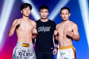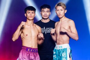 ซานหลาง เกอซี ชั่งได้ 123.8 ป. ระดับน้ำ 1.0155 vs โคเฮอิ วากาบายาชิ ชั่งได้ 123.6 ป. ระดับน้ำ 1.0014 (MMA รุ่นสตรอว์เวต 115 -125 ป.)