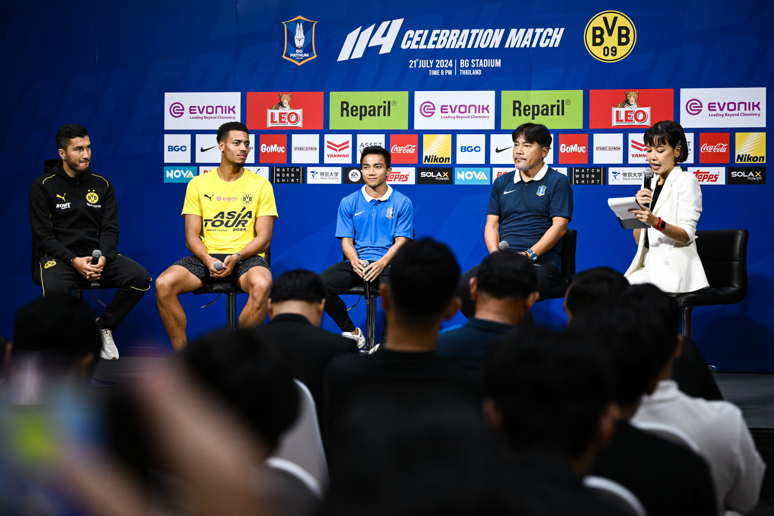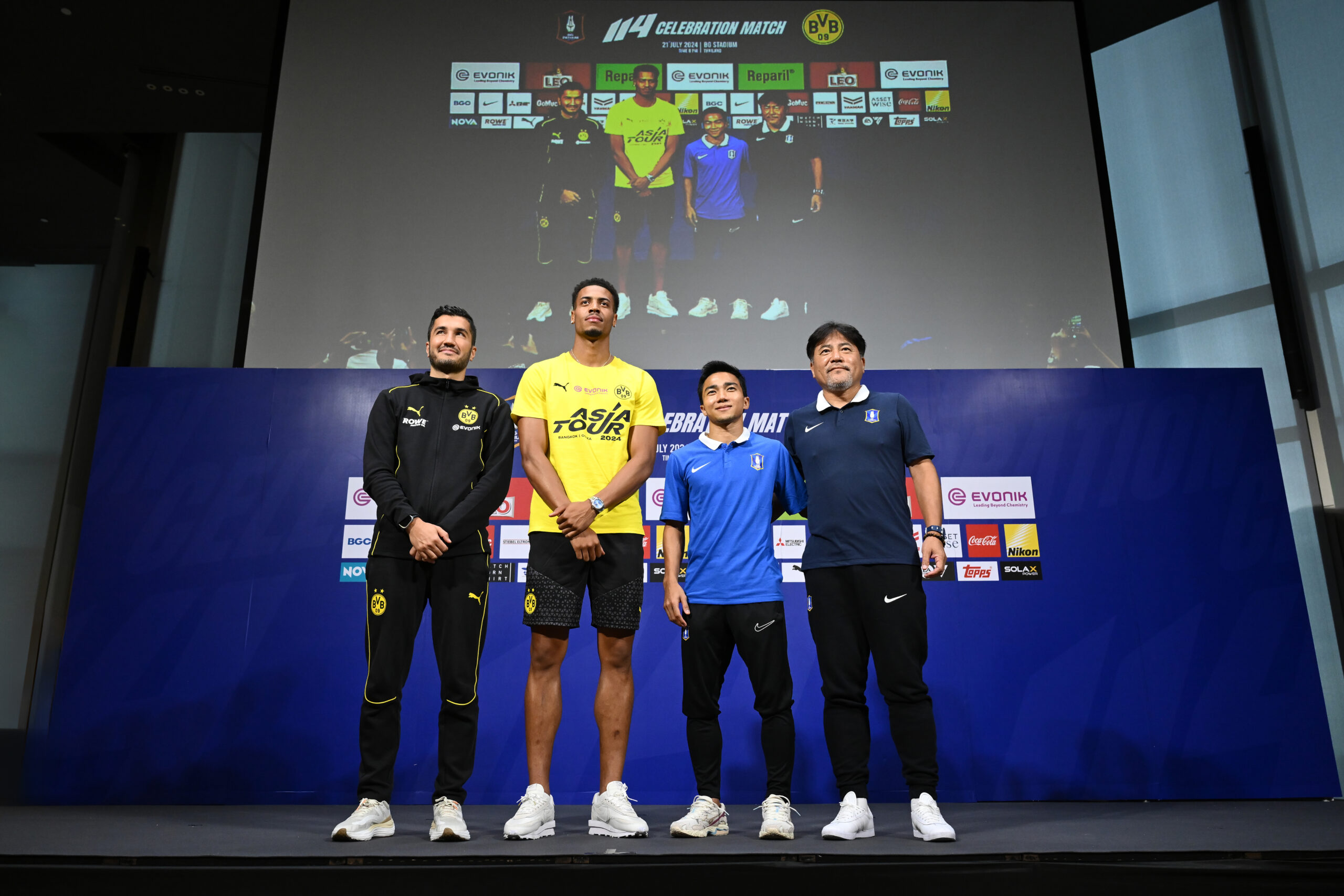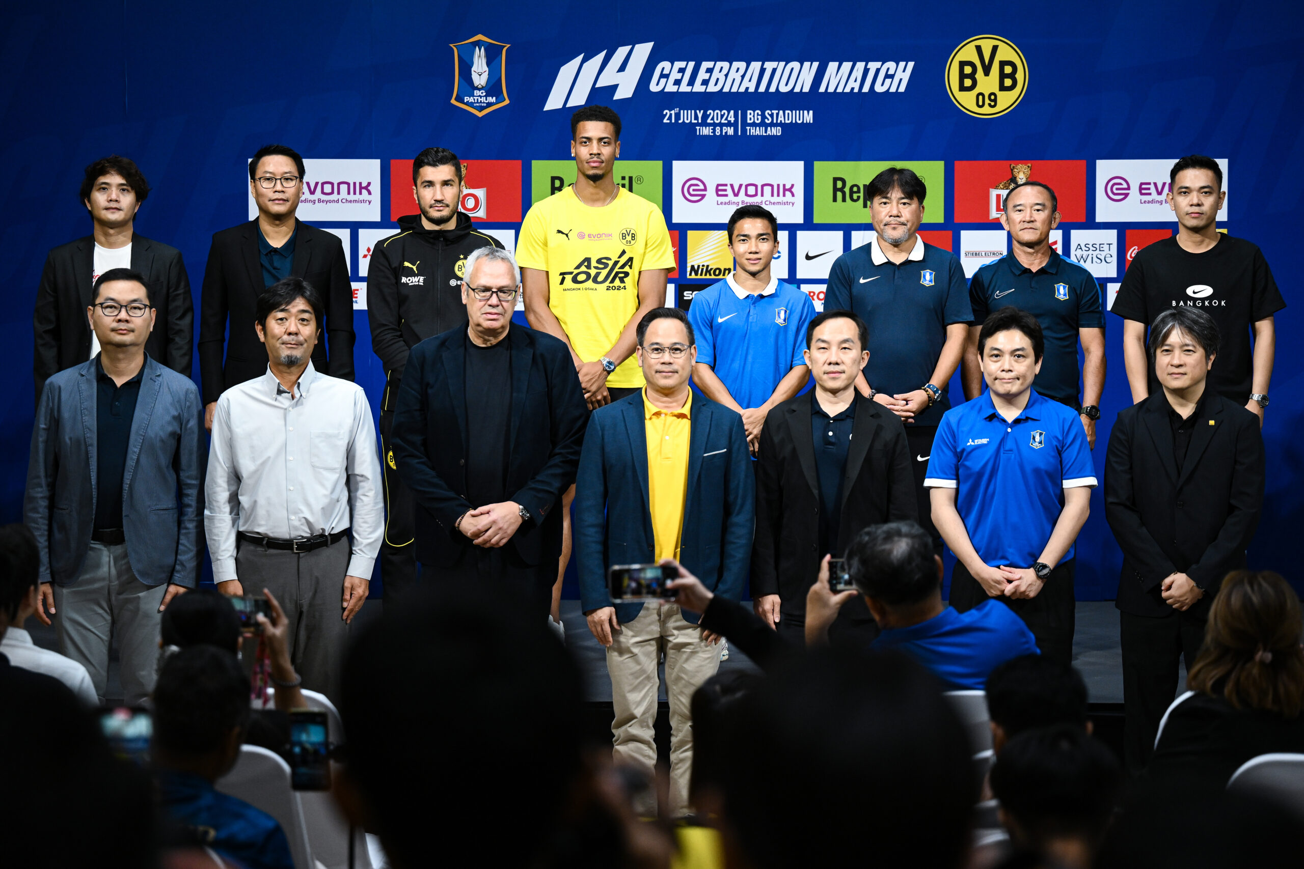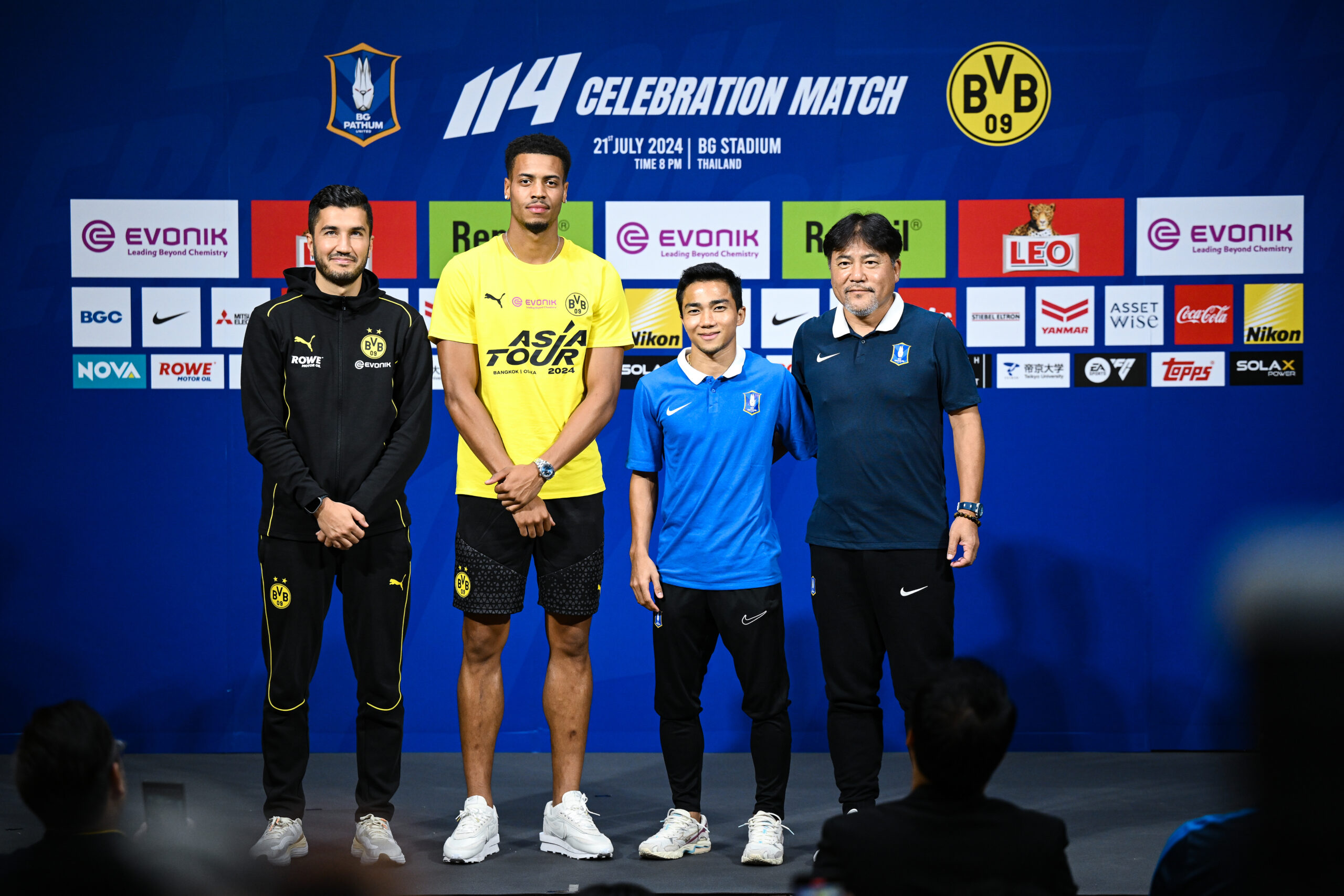 เมื่อ 20 กรกฎาคม 2567 ที่ชั้น 34 อาคารสิงห์ คอมเพล็กซ์ ได้มีการจัดงานแถลงข่าวก่อนเกมฟุตบอลนัดพิเศษ “114 Celebration BG Pathum United x BVB Dortmund” ระหว่างสโมสรบีจี ปทุม ยูไนเต็ด พบ โบรุสเซีย ดอร์ทมุนด์ โดยทัพ “เดอะ แรบบิท” มี มาโกโตะ เทกุระโมริ เฮดโค้ชชาวญี่ปุ่น และ ชนาธิป สรงกระสินธ์ ขณะที่ ดอร์ทมุนด์ มี นูริ ซาฮิน กุนซือใหญ่ กับ เฟลิกซ์ เอ็นเมชา นักเตะของทีมเข้าร่วมในงานแถลงข่าว