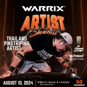สำหรับกิจกรรมครั้งนี้ ที่จะมีขึ้นในวันที่ 10 ส.ค.67 โดยทาง “Warrix” (วอริกซ์) ได้นำศิลปิน เสือ หรือ MR. PINMAN ศิลปินระดับแนวหน้าของเมืองไทย โดดเด่นในเรื่องของลายเส้น ที่สร้างสรรค์งานจากแรงบันดาลใจที่ชื่นชอบศิลปะ และใช้ศิลปะนำทางในชีวิต จนนำผลงานลายเส้นศิลปะลากพู่กันแนว Pinstriping ที่มีลายเส้นเฉียบคม เท่ห์ จากยุคศตวรรษที่ 19 ที่ใช้พู่กันปลายยาว สีเฉพาะ นำมาสร้างสรรค์ จนเป็นลายเส้นเฉพาะตัวจนกลายเป็นส่วนหนึ่งของชีวิต และปฎิเสธไม่ได้ว่าผลงานของเขามีชื่อในวงการมอเตอร์ไซค์ Pinstriping และ Custom paint เป็นที่ยอมรับในวงการศิลปะ รวมทั้งกลุ่มคนที่ชื่นชอบยานยนต์ มอเตอร์ไซด์ Harley (ฮาร์เลย์)หรือรถยนต์คลาสสิค และกลุ่มของ Thaland Kustom Kulture ได้สร้างผลงานลายเส้น แนว Pinstriping ไว้มากมาย กับสินค้าหลายรูปแบบ เช่นรถยนต์ รถมอเตอร์ไซด์ หมวกกันน็อค เสื้อหนัง แบรนด์สินค้าใหญ่ ๆ อีกมากมาย ของรักดาราดัง ได้ร่วมงานกับแบรนด์สินค้าใหญ่ๆ และมีชื่อเสียงไปในต่างประเทศกลุ่มของโซนเอเชีย