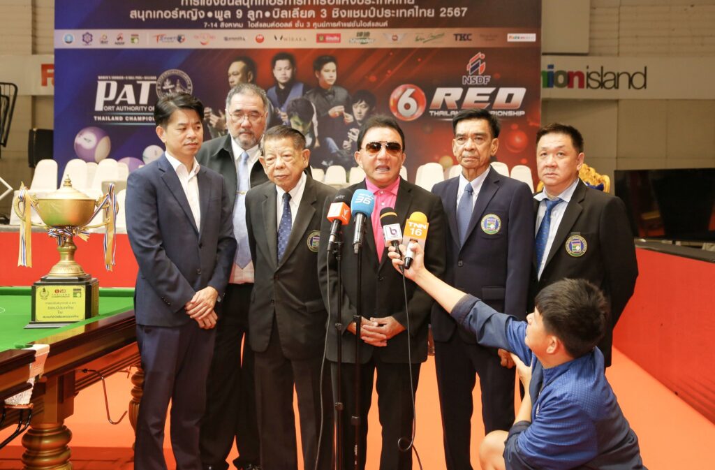 นายสุนทร จารุมนต์ นายกสมาคมกีฬาบิลเลียดแห่งประเทศไทย เป็นประธานในงานแถลงข่าวและพิธีจับสลากแบ่งกลุ่ม การแข่งขันสนุกเกอร์ 6 แดงชิงแชมป์ประเทศไทย ประจำปี 2567 รายการ NFDF ซิกเร้ด ไทยแลนด์ แชมเปี้ยนชิพ 2024 พร้อมด้วย นายอำนาจ ชยานุรักษ์ ที่ปรึกษาสมาคมกีฬาบิลเลียดฯ และนักกีฬาทีมชาติไทย ร่วมในพิธีจับสลากแบ่งกลุ่ม ที่ ไอส์แลนด์ฮอลล์ ศูนย์การค้าแฟชั่นไอส์แลนด์ รามอินทรา เมื่อคืนวันที่ 6 ส.ค.67