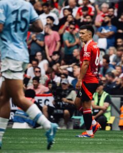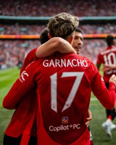 นาที 82 ปีศาจแดง ได้ประตูนำ 1-0 จนได้เมื่อตัดบอลในแดนตัวเองแล้วโต้กลับทันที บรูโน่ แฟร์นันด์ส ถ่ายออกขวาให้ การ์นาโช่ เลี้ยงตัดเข้าในเขตโทษก่อนยิงด้วยซ้ายหักข้อเบียดเสาแรกเข้าไปอย่างแม่นยำ