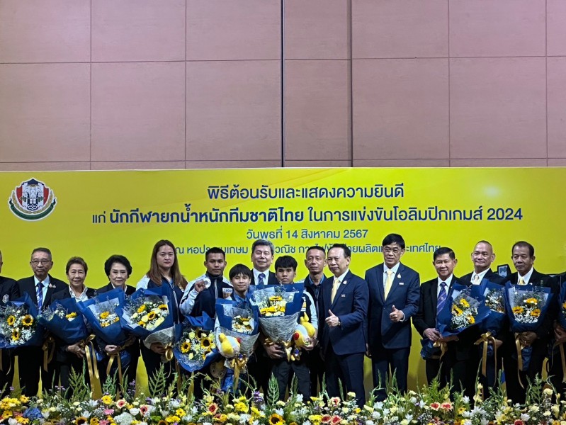 นักกีฬายกน้ำหนักทีมชาติไทย ชุดเข้าร่วมมหกรรมกีฬาโอลิมปิก ปารีส 2024 นำโดย “ฟ่าง” ธีรพงศ์ ศิลาชัย เหรียญเงิน รุ่น 61 กิโลกรัมชาย, “เวฟ” วีรพล วิชุมา เหรียญเงิน รุ่น 73 กิโลกรัมชาย, “ออย” สุรจนา คำเบ้า เหรียญทองแดง รุ่น 49 กิโลกรัม หญิง และ “ส้ม” ดวงอักษร ใจดี อันดับ 6 รุ่นมากกว่า 81 กิโลกรัม หญิง พร้อมทีมงานผู้ฝึกสอน และเจ้าหน้าที่ เดินทางกลับจากกรุงปารีส ถึงท่าอากาศยานสุวรรณภูมิ เมื่อเช้าวันที่ 14 สิงหาคม 2567 โดยมี นายพลภูมิ วิภัติภูมิประเทศ ผู้ช่วยรัฐมนตรีว่าการกระทรวงท่องเที่ยวและกีฬา ให้การต้อนรับ พร้อมด้วย ดร.ก้องศักด ยอดมณี ผู้ว่าการการกีฬาแห่งประเทศไทย (กกท.), ผู้บริหารสมาคมกีฬายกน้ำหนักสมัครเล่นแห่งประเทศไทย, บริษัท ท่าอากาศยานไทย จำกัด (มหาชน), ครอบครัวและญาติพี่น้องนักกีฬา, ผู้สนับสนุน, ผู้เกี่ยวข้อง และสื่อมวลชน ซึ่งบรรยากาศเป็นไปอย่างอบอุ่น