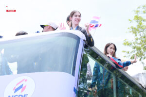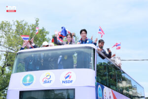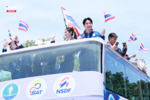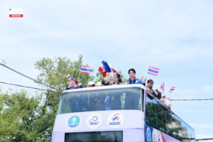 จากนั้น ได้มีพิธีแห่ฉลองชัย นักกีฬาโอลิมปิกไทย 2024 นำมาโดย “เทนนิส พาณิภัค“ และนักกีฬามวยสากลสมัครเล่น แบดมินตัน ยกน้ำหนัก ปิงปอง ก่อนขึ้นขบวนรถบัสจากคณะกรรมการโอลิมปิกแห่งประเทศไทยไปยัง ณ ตึกสันติไมตรี ทำเนียบรัฐบาล