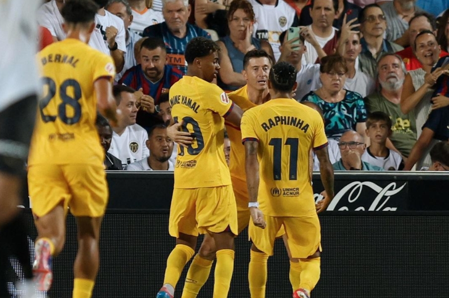 ครึ่งแรก ในนาทีที่ 44 บาเลนเซีย ได้ประตูขึ้นนำ 1-0 ก่อน  จากการขึ้นโคกของ อูโก ดูโร แม้มีธงล้ำหน้าแต่ VAR เช็คแล้วไม่ล้ำ  มาถึงช่วงทพเวลาบากเจ็บทดเจ็บ นาทีที่ 45+5 บาร์เซโลนา ตามตีเสมอได้สำเร็จ เมื่อ ลามีน ยามาล จ่ายให้ โรเบิร์ต เลวานดอฟสกี ชาร์จเข้าไป จบครึ่งแรกเสมอกัน 1-1