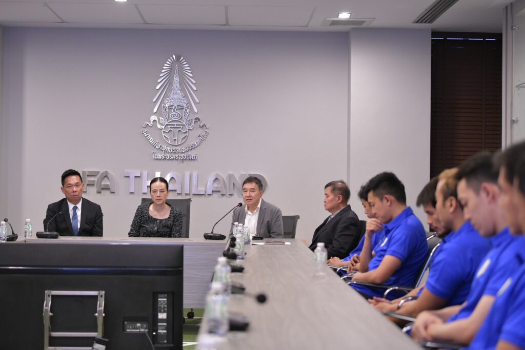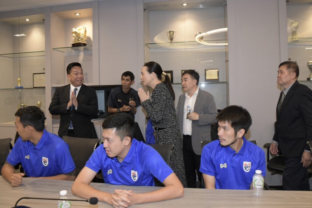 โดยการรายงานตัวครั้งนี้ นำโดย “มาดามแป้ง” นวลพรรณ ล่ำซำ นายกสมาคมกีฬาฟุตบอลแห่งประเทศไทยฯ พร้อมด้วย อดิศักดิ์ เบ็ญจศิริวรรณ อุปนายกสมาคมฯ ,พันตำรวจโท หม่อมหลวง กิติบดี ประวิตร เลขาธิการสมาคมฯ, สุทิน บัวตูม ผู้จัดการทีมฟุตซอลทีมชาติไทย ,มิเกล โรดริโก้ หัวหน้าผู้ฝึกสอน และนักเตะที่มารายงานตัว