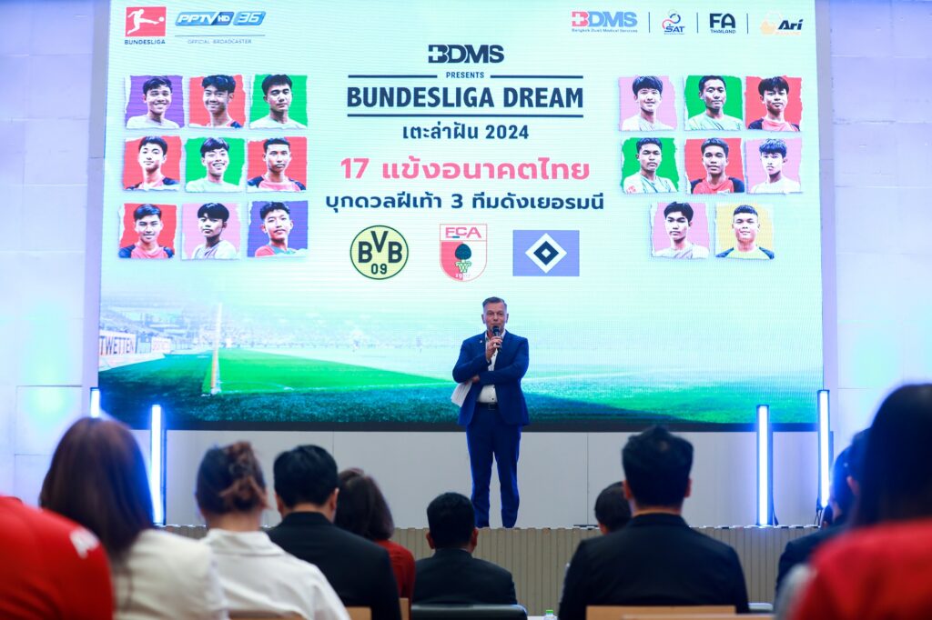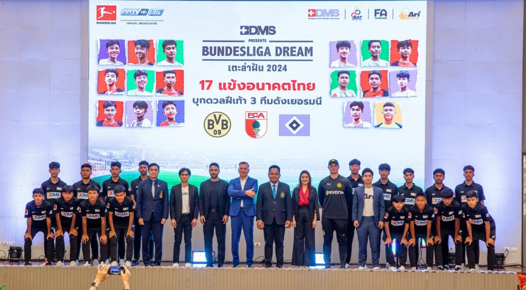 จากความร่วมมือครั้งสำคัญระหว่างการกีฬาแห่งประเทศไทย (SAT) สมาคมกีฬาฟุตบอลแห่งประเทศไทย ในพระบรมราชูปถัมภ์ (FA Thailand) และ PPTV HD 36 ในฐานะสถานีโทรทัศน์ฟรีทีวีที่ถือลิขสิทธิ์ถ่ายทอดสดการแข่งขันฟุตบอลบุนเดสลีกา ได้คัดเลือกนักเตะเยาวชนไทยที่มีความสามารถจากทั่วประเทศจนเหลือเพียง 17 คน เพื่อเข้าร่วมโครงการ “BDMS PRESENTS BUNDESLIGA DREAM เตะ ล่า ฝัน 2024” และมีโอกาสสัมผัสประสบการณ์ชีวิตในสโมสรฟุตบอลเยาวชนชั้นนำของบุนเดสลีกา เพื่อ พัฒนาศักยภาพ เตรียมพร้อมสู่การแข่งขันระดับนานาชาติในอนาคต