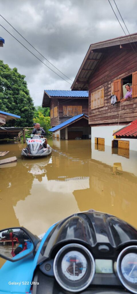 สมาคมกีฬาเจ็ตสกีแห่งประเทศไทย และทีมนักกีฬาเจ็ตสกีทั่วประเทศ ช่วยกันคนละไม้คนละมือ โดยทีมหน้ากำลังปฎิบัติภารกิจเข้าจุดอำเภอลอง จังหวัดแพร่ ส่งน้ำดื่ม อาหาร เจาะเข้า 300 ครัวเรือน หมู่บ้านร่องบ่อน หมู่บ้านปากจอก ขณะที่กลุ่มทีมกีฬาเจ็ตสกีทั่วประเทศ ร่วมใจ ส่งทั้งเรือท้องแบนเพื่อขนของ ยา และเวชพรรณ ฯลฯ พบชาวบ้านเดือดร้อนหนัก น้ำท่วมถึงหลังคา ส่วนพี่น้องที่ต้องการความช่วยเหลือฉุกเฉินเร่งด่วน ติดต่อที่ นางจิราพร กาญจนพิทักษ์ 090-991-4559 และนายเสริมศักด์ 096-595-8599