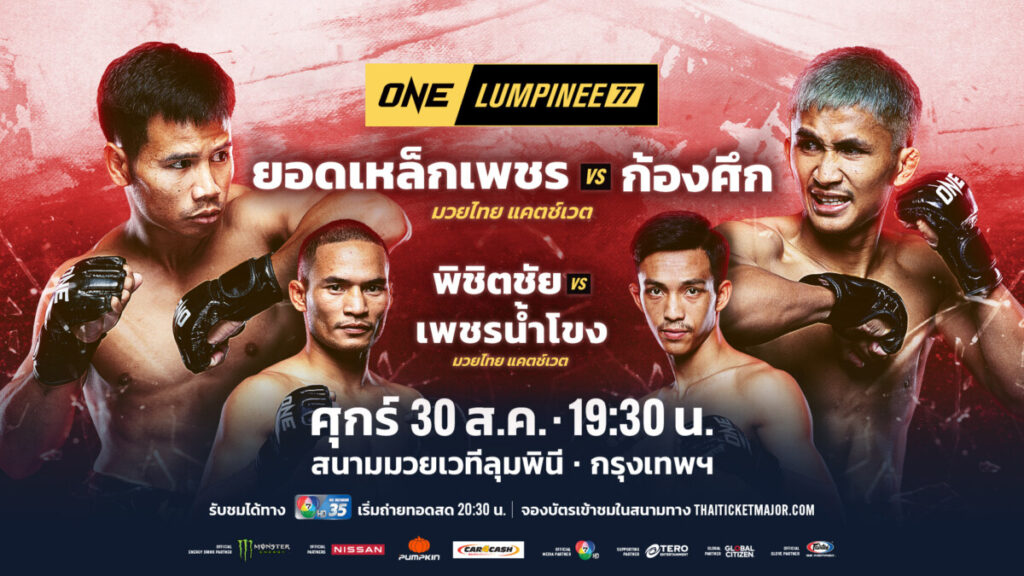 ดตามชม “ยอดเหล็กเพชร vs ก้องศึก” ศึก ONE ลุมพินี 77 ถ่ายทอดสดจากสนามมวยเวทีลุมพินี (รามอินทรา) วันศุกร์ที่ 30 ส.ค.นี้