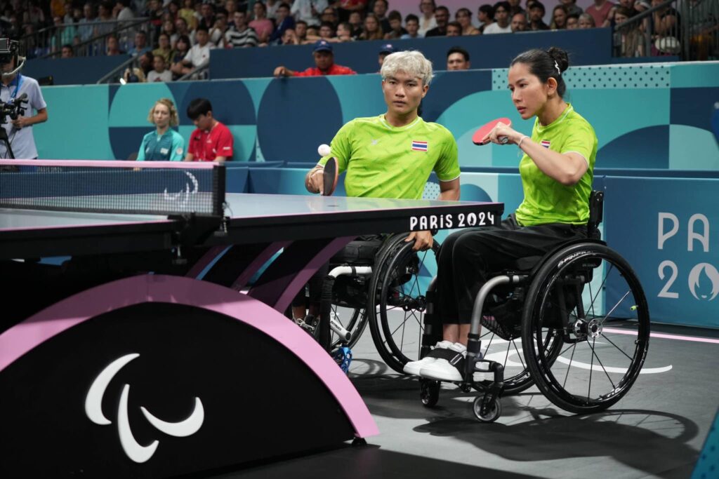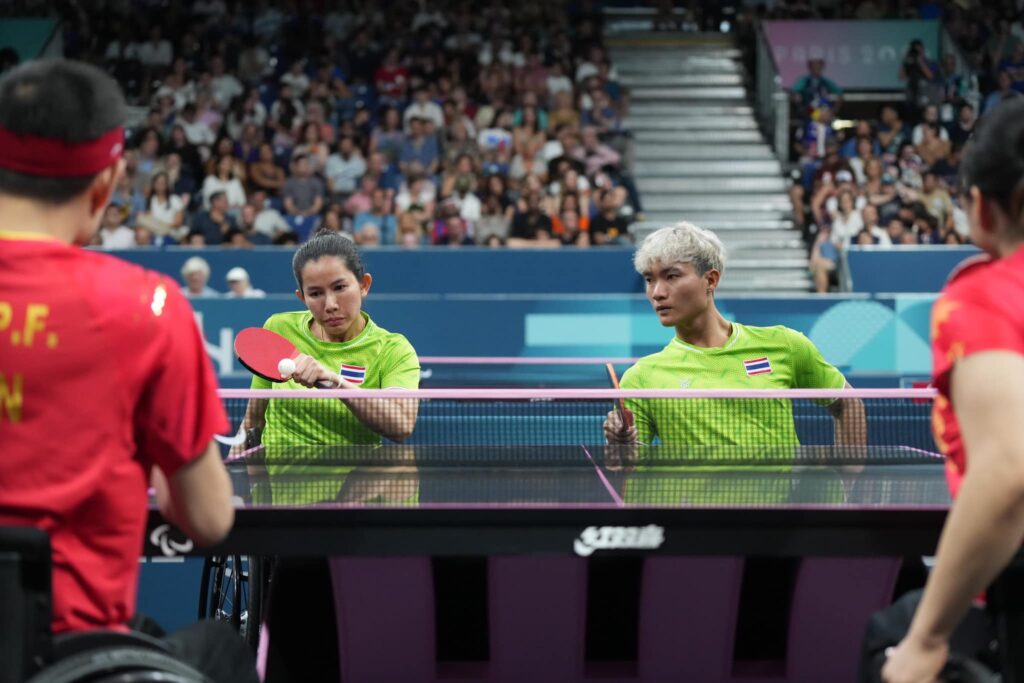 การแข่งขันเทเบิลเทนนิส พาราลิมปิก “ปารีส 2024” ประเภทคู่ผสม คลาส XD7 รอบชิงชนะเลิศ ยุทธจักร กลิ่นบานชื่น จับคู่กับ วิจิตรา ใจอ่อน มืออันดับ 3 ของรายการ จากประเทศไทย ลงสนามพบกับ เฟิง ผานเฟิง กับ โจว หยิง มือ 1 ของรายการ จากประเทศจีน