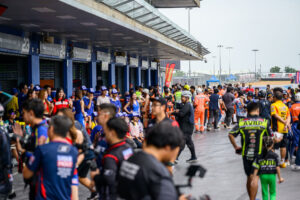 ล่าสุดเป็นการแข่งขันในเรซที่ 1 เปิดฉากด้วยกิจกรรม “พิตเลน วอล์ค” ที่เปิดโอกาสให้แฟนความเร็วได้พบปะกับทัพนักบิดซูเปอร์สตาร์ นักบิดดาวรุ่งทั้งไทยและต่างชาติที่ลงทำการแข่งขัน ได้เห็นพิตการทำงานของทีมแข่งชั้นนำของประเทศไทย รวมถึงนางฟ้าขวัญใจชาวสองล้อที่มาร่วมประชันโฉมกันในสนามส่งท้ายฤดูกาลนี้มากมายกว่าทุกสนาม โดยทีมแข่งและแบรนด์สินค้าต่างพร้อมใจกัน เฟ้นหาพริตตี้สาวสวย สุดเซ็กซี่ ประจำพิต, กางร่มให้นักบิดที่กริดสตาร์ต ยกทัพสาวงามตัวแม่ตัวมัมจากทั่วประเทศ มาประชันโฉม ทำเอาบรรยากาศในสนามสดชื่นและคึกคักอย่างมาก