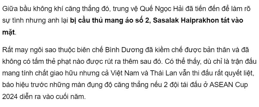อย่างไรก็ตาม แม้เกมดังกล่าวจะจบลงไปแล้ว แต่กลับมีประเด็นดราม่าตามมา หลังจากเพจข่าว Think Curve คิดไซด์โค้ง ได้มีการนำเสนอข่าวของ สื่อชื่อดังของเวียดนาม มีการบิดเบือนข่าว กล่าวหาว่า “ศศลักษณ์ ไหประโคน” กองหลังทีมชาติไทย ไปตบหน้า “เกว๋ หง็อก ไห่” นักเตะตัวเก๋าของทีมชาติเวียดนาม ในจังหวะที่ “วรชิต กนิตศรีบำเพ็ญ” เข้าไปสกัดบอลด้านหลังของ “เหงียน วาน ตวน” จนเกือบมีเหตุการณ์ชุลมุน แต่ผู้ตัดสินและเพื่อนร่วมทีมเข้ามาห้ามไว้ได้ทัน ไม่มีเหตุการณ์บานปลาย แต่สื่อเวียดนามกลับลงข่าวโจมตี ศสลักษณ์ ว่า