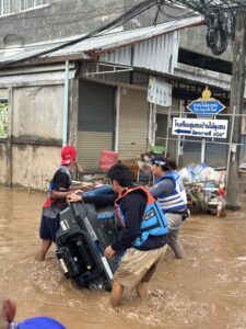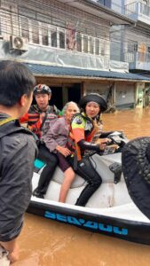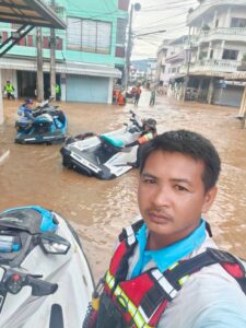 ส่วนน้ำใจนักกีฬาเจ็ตสกีทั่วประเทศ ยังคงหลั่งไหลสนับสนุนการปฏิบัติภารกิจช่วยผู้ประสบภัยน้ำท่วม กลุ่มจังหวัดภาคเหนืออย่างต่อเนื่อง ซึ่งล่าสุด ทัพนักกีฬาเจ็ตสกี นำโดย “ออย” อรรถพล คุณสา นักเจ็ตสกีเหรียญทอง กีฬาเอเชียนเกมส์ ครั้งที่ 18 ที่กรุงจาการ์ตา ประเทศอินโดนีเซีย กับ “พอช” กีรติกร ผิวงาม แชมป์ประเทศไทยคนปัจจุบัน พร้อมทีมงาน JET SKI FOR RENT by JOMPOL และทีม 777 PERFORMANCE BY JUMBO TUNER ออกเดินทางถึง อ.แม่สาย เป็นที่เรียบร้อย พร้อมสิ่งของบริจาคทั้งข้าวสาร อาหารแห้ง น้ำดื่ม ข้าวของ เครื่องใช้ อุปโภคบริโภค ต่าง ๆ และเรือเจ็ตสกีขึ้นมาสมทบในการช่วยเหลือประชาชน พร้อมลงพื้นที่ช่วยเหลือทันที