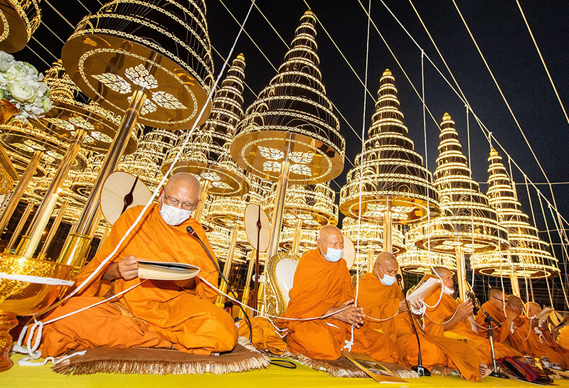 ชาวบุรีรัมย์ร่วมใจกันติดตั้งฉัตร 9 ชั้น จำนวน 360 ต้น เนรมิตพื้นที่สวยงามวิจิตร นักท่องเที่ยวสามารถถวายการสักการะขอพรด้วยการเขียนบน
