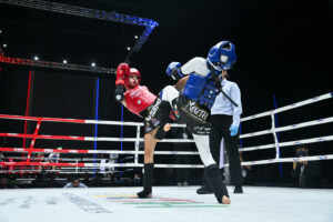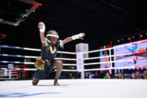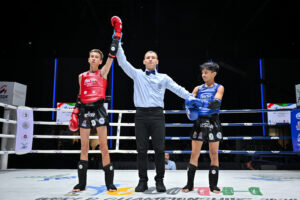 รุ่น 40 กก.หญิง อายุ 14-15 ปี “ดีเจ ศิษย์อ๊อดน้อย” นยนา ตาลรัตน์ พ่ายน็อคให้กับ สกาย แบรนซัน จากออสเตรเลีย