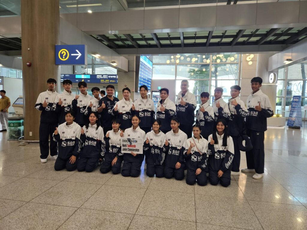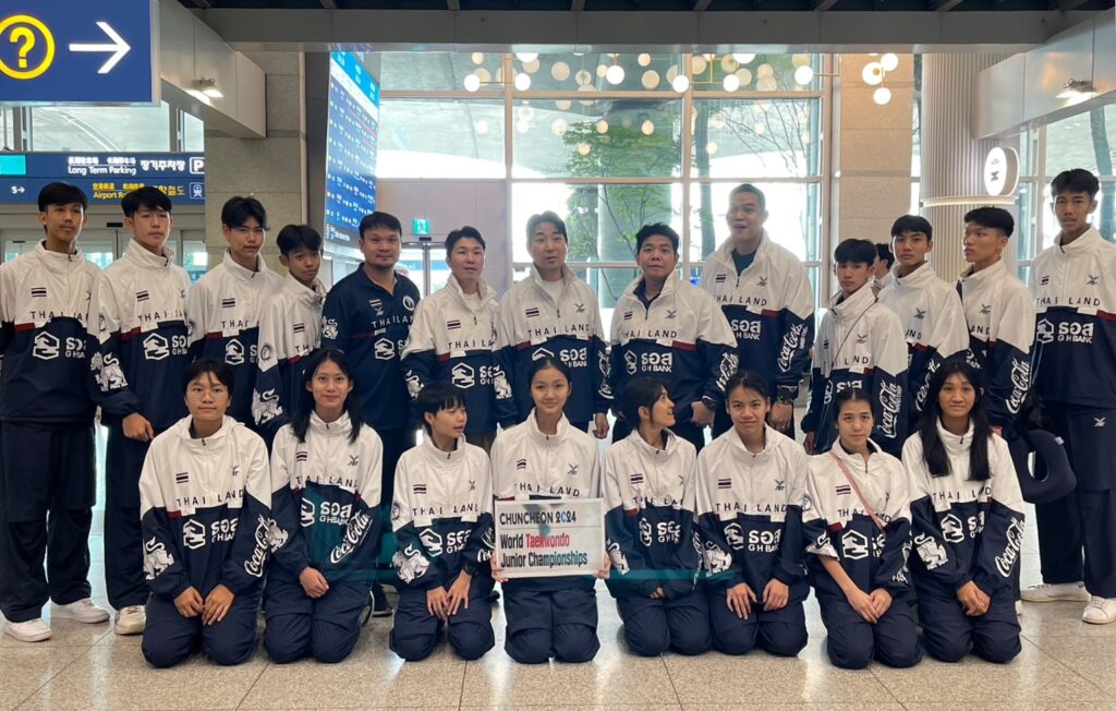 สมาคมกีฬาเทควันโดแห่งประเทศไทย ส่ง 16 จอมเตะดาวรุ่งเข้าร่วมชิงชัยในศึก ชุนชอน 2024 เวิล์ด เทควันโด จูเนียร์ แชมเปี้ยนชิพ หรือ ศึกเทควันโดเยาวชนชิงแชมป์โลก 2024 ที่เมืองชุนชอน ประเทศเกาหลีใต้ ระหว่างวันที่ 1-6 ต.ค.2567 โดยเมื่อช่วงดึกวันที่ 26 ก.ย.ที่ผ่านมา ทัพจอมเตะไทย นำโดย “โค้ชเช” ชัชชัย เช หัวหน้าผู้ฝึกสอนทีมชาติไทย ได้นำนักกีฬาไทย ออกเดินทางจากท่าอากาศยานสุวรรณภูมิ มุ่งหน้าสู่เมืองชุนชอน ประเทศเกาหลีใต้ โดยสายการบินเอเชียน่า แอร์ไลน์ เที่ยวบิน oz 742 เป็นที่เรียบร้อยแล้ว