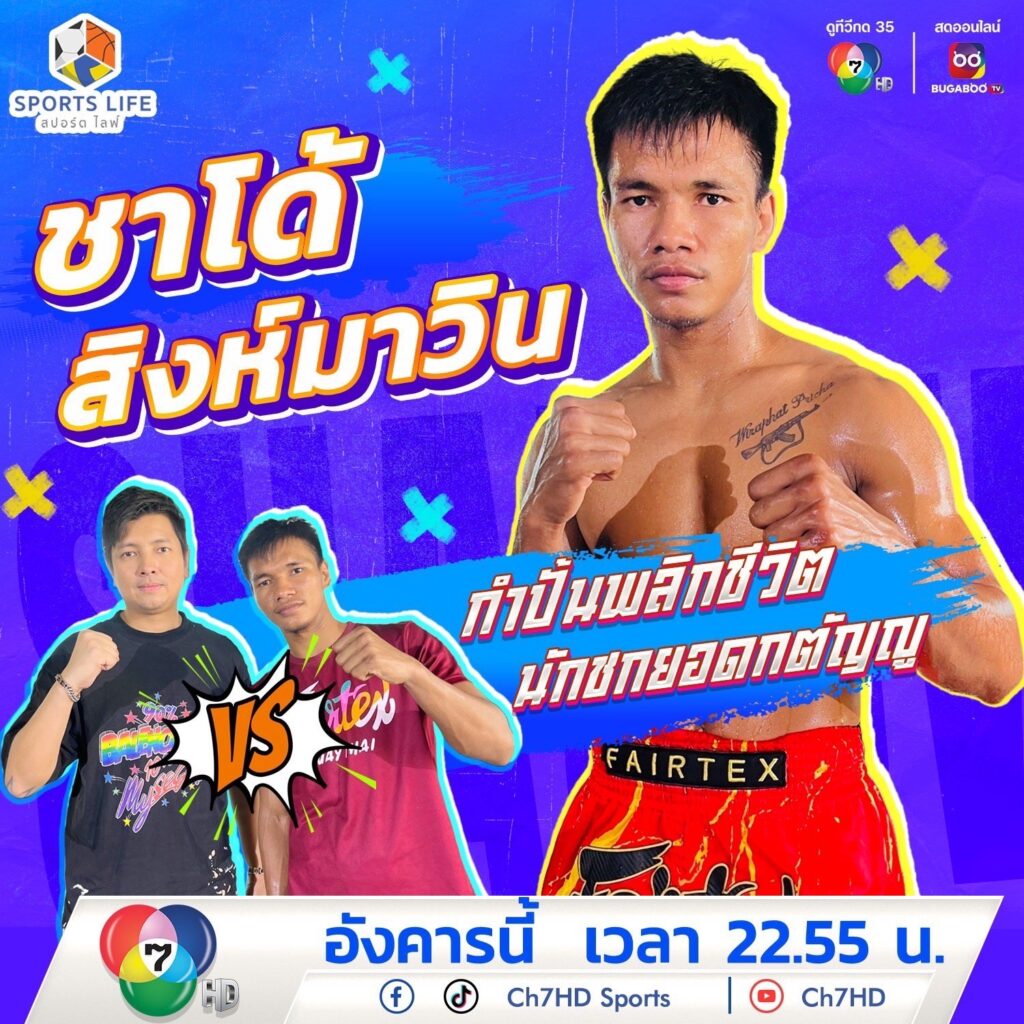 มาทำความรู้จัก ชาโด้ สิงห์มาวิน แบบล้วงลึกจัดเต็มได้ในรายการ SPORTS LIFE วันอังคารที่ 15 ตุลาคมนี้ เวลา 22.55 น. ทาง ช่อง 7HD กด 35 และแฟนกีฬาสามารถติดตามข่าวสารต่าง ๆ ได้ทาง ช่อง 7HD ดูทีวีกด 35 สดออนไลน์ BUGABOO.TV ช่องทางออนไลน์ Ch7HD Sports (Facebook, IG, TikTok) และ Ch7HD (Facebook, IG, TikTok, X, YouTube) และเว็บไซต์ www.ch7.com