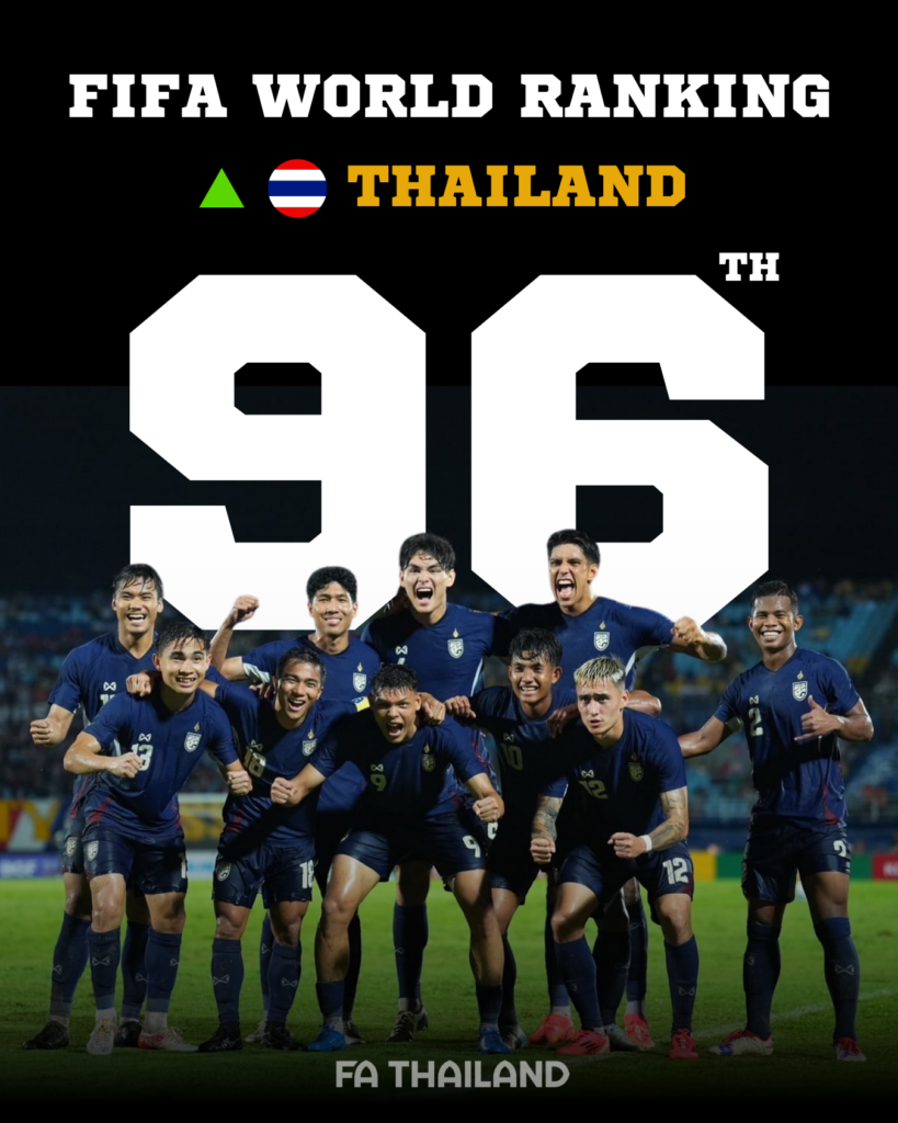 พุ่งสูงสุดรอบ 16 ปี! ทีมชาติไทย รั้งอันดับ 96 ของโลก-ขึ้น 4 อันดับมากสุดในทวีปเอเชีย