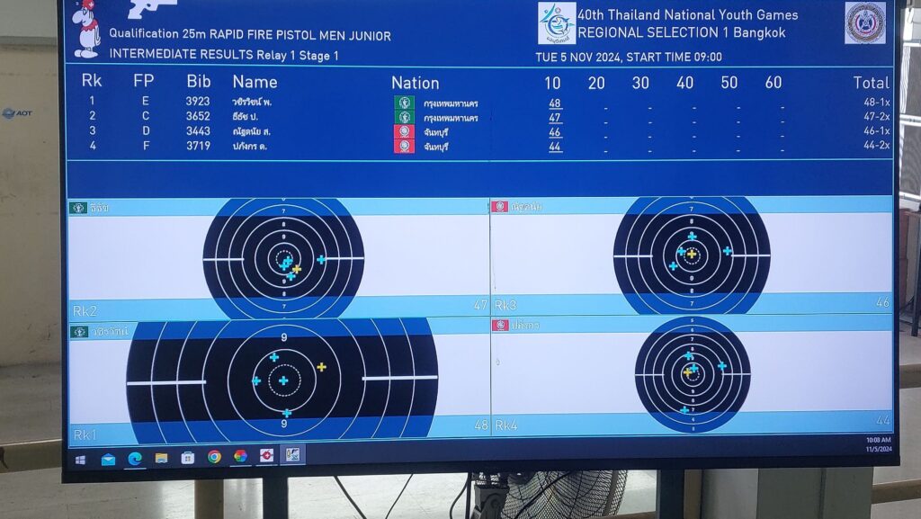 ล่าสุดในส่วนของปืนสั้นยิงเร็ว บุคคล ระยะ 25 เมตร รอบคัดเลือกภาค 1 เมื่อวันที่ 5 พฤศจิกายน ซึ่งทุกคนต้องยิงจำนวน 60 นัด ผลปรากฏว่า อันดับ 1 ตกเป็นของ “เปิ้ล” ธีรัช ประดิษฐ์สุดสวาท 562 คะแนน , อันดับสอง “นะโม” วชิรวิทย์ พวงทอง 549 คะแนน / อันดับสาม “เนม” ปิยวิทย์ โพธิ์กุล 539 คะแนน โดยทั้ง 3 เป็นนักกีฬายิงปืนเยาวชนทีมชาติไทย สังกัดกรุงเทพมหานคร