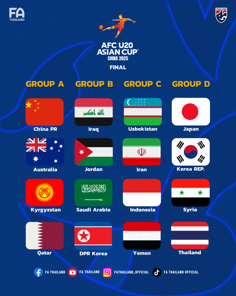 ทีมชาติไทย U20 เจองานหนัก อยู่ร่วมสาย ญี่ปุ่น, เกาหลีใต้, ซีเรีย ศึกชิงแชมป์เอเชีย รอบสุดท้าย ที่ประเทศจีน