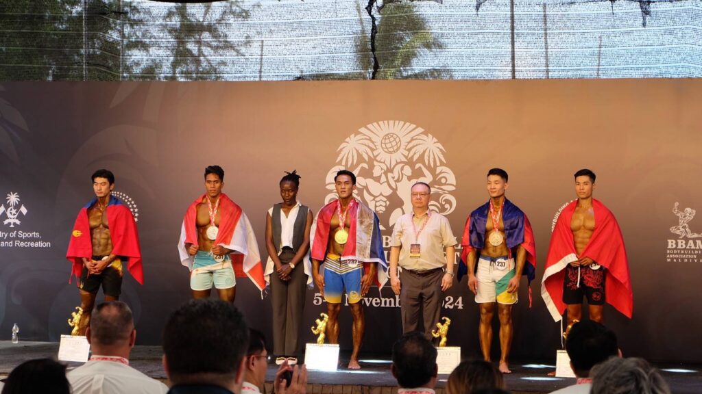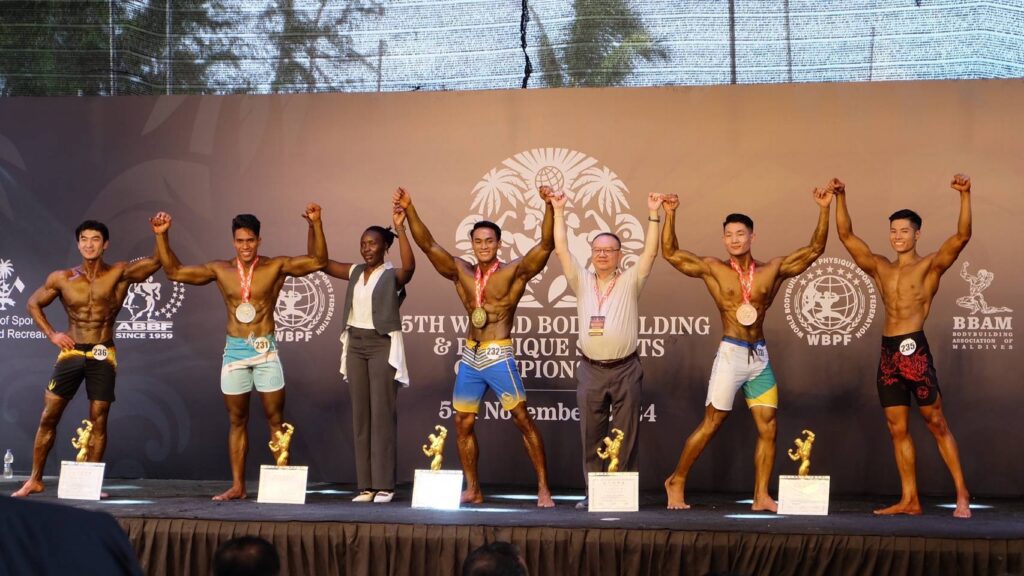 โมเดลฟิสิคหญิง รุ่นความสูง 170 ซม.ขึ้นไป เหรียญเงิน ชัญญาภัสร์ ก่อพาราภิรมย์ เหรียญทอง ริกะ คูโรชากิ (ญี่ปุ่น) ทองแดง มุนาสิงห ปาติราเนจ นายานี(ศรีลังกา) ด้าน 4 เหรียญทองแดง ทำได้จาก สปอร์ตฟิสิคชายรุ่นความสูงไม่เกิน 170 ซม. นันทพงศ์ มุขดาราเหรียญทอง อัซนีน ราชาด (มัลดีฟส์) เงิน ฮามิดดุลลา คุชดิล (อัฟกานิสถาน)
