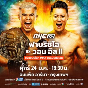 อัปเดตคู่มวยเตรียมระเบิดความมันใน ศึก ONE 170 ที่จะระเบิดความสนุกขึ้น ณ อิมแพ็ค อารีนา เมืองทองธานี ในวันศุกร์ที่ 24 ม.ค.68 เริ่มคู่แรกเวลา 19.30 น. โดย “ฟาบริซิโอ อานดราเด” แชมป์โลก ONE MMA รุ่นแบนตัมเวต (135-145 ป.) จะป้องกันเข็มขัดครั้งแรกกับ “ควอน วอน อิล” คู่ปรับเก่าจากเกาหลีใต้