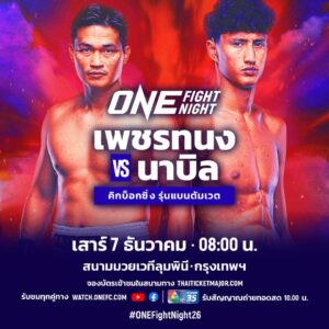 สำหรับศึก ONE Fight Night 26 นอกจากคู่ “เพชรทนง vs นาบิล” แล้ว ยังมีการชิงเข็มขัดอีกสองเส้น โดยคู่เอกเป็นการชิงแชมป์โลก ONE MMA รุ่นไลต์เวต (155-170 ป.) ระหว่าง “คริสเตียน ลี” เจ้าของตำแหน่งแชมป์โลกรุ่นนี้ พบกับ “อาลิเบก ราซูลอฟ” ผู้ท้าชิงไร้พ่าย จากตุรกี และ การชิงเข็มขัดแชมป์โลก ONE ปล้ำจับล็อก รุ่นอะตอมเวต (105-115 ป.) ระหว่าง “เมซซา บาสโตส” เจ้าของแชมป์โลกชาวบราซิล พบกับคู่ปรับเก่า “แดเนียล เคลลี” อดีตราชินีของรุ่นนี้ จากสหรัฐอเมริกา