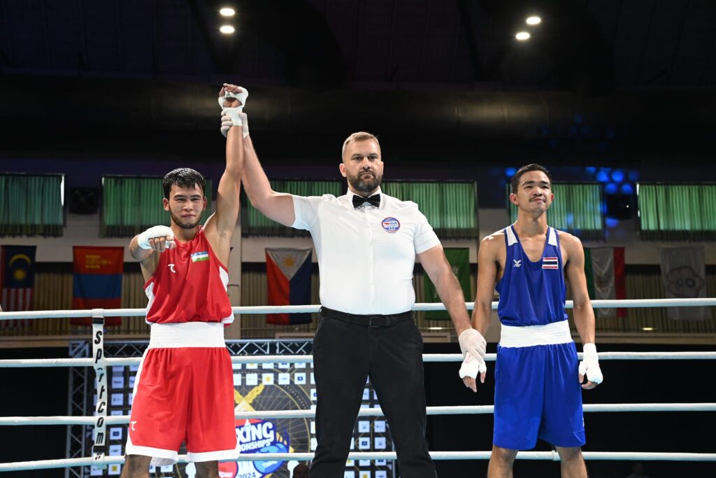 และ รุ่น 48 กก. ณัฐพงษ์ ท้วมเจริญ แพ้คะแนน ชอว์ดิยอจอน เมลิคูเซฟ (อุซเบกิสถาน)0-5 ตกรอบแรก