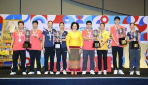 ประเภทคู่ผสม “มิกซ์” รัชพล มรรคศศิธร กับ “หว่าหวา” นัทธมน ไล้สวน ชนะ “ไตเติ้ล” รุษฐนภัค อูปทอง กับ “เจน” เฌอย์ณิชา สุดใจประภารัตน์ 22-20 ,21-17