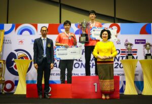 ประเภทคู่ผสม “มิกซ์” รัชพล มรรคศศิธร กับ “หว่าหวา” นัทธมน ไล้สวน ชนะ “ไตเติ้ล” รุษฐนภัค อูปทอง กับ “เจน” เฌอย์ณิชา สุดใจประภารัตน์ 22-20 ,21-17