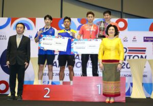 ประเภทชายเดี่ยว “อัปเปอร์” วงศ์ทรัพย์ วงศ์ทรัพย์อินทร์ ชนะ ภูริธัช อารีย์ 2-1 เกม 21-13 , 11-21,21-14