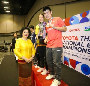 การแข่งขันแบดมินตันรายการ “โตโยต้า ชิงชนะเลิศแห่งประเทศไทย ประจำปี 2567” หรือ ศึกชิงแชมป์ประเทศไทย ชิงถ้วยพระราชทาน พระบาทสมเด็จพระเจ้าอยู่หัว และเงินรางวัลรวม 1,084,000 บาท ที่เวสต์เกตฮอลล์ ชั้น 4 ศูนย์การค้าเซ็นทรัล เวสต์เกต เมื่อวันอาทิตย์ที่ 22 ธ.ค.67 ที่ผ่านมา เป็นการแข่งขันในรอบชิงชนะเลิศ