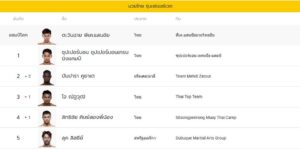 ส่วนอันดับ 4 เป็นของ “สิทธิชัย ศิษย์สองพี่น้อง” นักชกคิกบ็อกซิ่งระดับตำนานจากบุรีรัมย์ ที่ถูกเบียดหล่นลงมาจากอันดับ 3 และปิดท้ายกับอันดับ 5 อย่าง “ลุค ลิสซีย์” ยอดนักชกจากสหรัฐอเมริกา ที่ไฟต์ล่าสุดเพิ่งโชว์ฟอร์มเดือดเอาชนะทีเคโอ “โคดี เจโรม” นักชกดีกรีแชมป์ Road To ONE แคนาดา มาในศึก ONE Fight Night 27 เมื่อ 11 ม.ค.ที่ผ่านมา