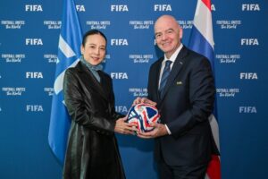 สำหรับ “มาดามแป้ง” นวลพรรณ ล่ำซำ นายกสมาคมกีฬาฟุตบอลแห่งประเทศไทยฯ เพิ่งมีโอกาสพบกับ จานนี อินฟานติโน ประธานฟีฟ่า ที่กรุงโดฮา ประเทศกาตาร์ หลังได้รับคำเชิญในฐานะแขกของ ฟีฟ่า เข้าร่วมชมการแข่งขัน ฟุตบอลชิงแชมป์สโมสรโลก 2024 รอบชิงชนะเลิศ เมื่อช่วงเดือนธันวาคม 2567 รวมถึงครั้งนี้ ยังถูกเชิญ ให้เดินทางมาชม การแข่งขันฟุตบอลชิงแชมป์สโมสรโลก 2025 เช่นกัน ที่จะจัดขึ้นประเทศสหรัฐอเมริกา ระหว่างวันที่ 15 มิถุนายน – วันที่ 13 กรกฎาคม ปี 2568