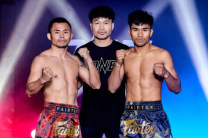 คู่เอกของรายการ “นักรบ แฟร์เท็กซ์” ผู้ท้าชิงอันดับ 4 ของแรงกิง ONE มวยไทย รุ่นฟลายเวต คนปัจจุบัน ลุ้นกู้คืนฟอร์มเก่งปะทะ “ผึ้งหลวง บ้านแรมบ้า” นักสู้ใจใหญ่ วัย 25 ปี จากอุบลราชธานี ในกติกามวยไทย รุ่นฟลายเวต