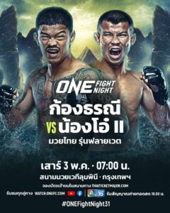 “ก้องธรณี” รีแมตช์เดือด “น้องโอ๋” ขึ้นป้ายคู่เอก ONE Fight Night 31