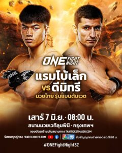 ONE แง้มคู่มวยเด็ดเตรียมเสิร์ฟความดุเดือด ในศึก ONE Fight Night 32 ที่จะถ่ายทอดสดสู่สายตาแฟนกีฬาการต่อสู้ใน 195 ประเทศทั่วโลก จากสนามมวยเวทีลุมพินี (รามอินทรา) ในช่วงไพรม์ไทม์อเมริกา ซึ่งตรงกับช่วงเช้าเวลา 08.00 น. ในวันเสาร์ที่ 7 มิ.ย.68 โดย “แรมโบ้เล็ก ฉ.อจลบุญ” นักสู้หนุ่มไฟแรง วัย 22 ปี จากชัยภูมิ จะเปิดศึกท้าดวลฝีมือกับ “ดีมิทรี คอฟตุน” มวยอาวุธคม วัย 27 ปี จากรัสเซีย ภายใต้กติกามวยไทย รุ่นแบนตัมเวต (135-145 ป.)