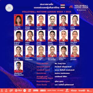 สมาคมกีฬาวอลเลย์บอลแห่งประเทศไทย ประกาศรายชื่อนักกีฬาวอลเลย์บอลหญิงทีมชาติไทย ชุดเข้าร่วมการแข่งขัน วอลเลย์บอลหญิง เนชันส์ลีก 2025 สนามแรก ที่กรุงปักกิ่ง สาธารณรัฐประชาชนจีน ระหว่างวันที่ 4 มิถุนายน – วันที่ 8 มิถุนายน 2568