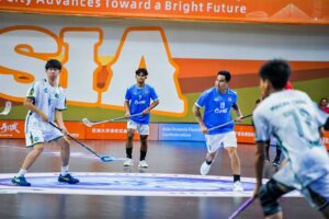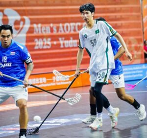 พลเรือโท ชาญชัยยศ อัฑฒ์สุวีร์ เลขาธิการสมาคมกีฬาฮอกกี้แห่งประเทศไทยรายงาน การแข่งขันฟลอร์บอลรายการ 2025 Men ‘s AOFC Cup ที่เมืองก้านโจว มณฑลเจียงซีสาธารณรัฐประชาชนจีน เมื่อวันที่ 3 มิ.ย.ที่ผ่านมาโดยมี 6 ชาติส่งทีมเข้าร่วมแข่งขัน ประกอบด้วยจีน, ประเทศไทย, เกาหลีใต้, สิงคโปร์, มาเก๊า และฮ่องกง ซึ่งนัดแรกไทยชนะสิงคโปร์ 6-4, นัดสองชนะฮ่องกง 29-0 และนัดสามชนะเกาหลีใต้ 4-3 และนัดที่สี่ลงเล่นกับทีมชาติมาเก๊า