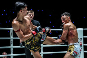 คู่เอกของรายการเป็นการเปิดศึกชิงตำแหน่งผู้ท้าชิงอันดับ 5 ของแรงกิง ONE มวยไทย รุ่นฟลายเวต ระหว่าง “นักรบ แฟร์เท็กซ์” เจ้าของเก้าอี้จากสุรินทร์ พบกับ “จ้าวเสือใหญ่ ม. กรุงเทพธนบุรี” คู่ชกอาวุธหลากหลายจากเมืองกรุง ที่มาปรากฏตัวบนเวที ONE (ใหญ่) เป็นครั้งแรก โดยเกมการชกจบเร็วเกินคาดเมื่อ “จ้าวเสือใหญ่” สาดแข้งเข้าก้านคอ “นักรบ” ได้นับแรก ก่อนจะตามยำหมัดและเตะซ้ายเสยปลายคางปิดเกมน็อกไปได้อย่างสวยงามตั้งแต่ยกแรก พร้อมรับโบนัส 5 หมื่นดอลลาร์สหรัฐ (กว่า 1.6 ล้านบาท ตามอัตราแลกเปลี่ยนปัจจุบัน) ประเดิมชัยบนเวทีระดับโลกแบบสุดปัง