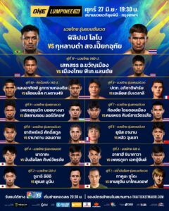 ส่องความยิ่งใหญ่ของโปรแกรมศึก ONE ลุมพินี 114 โดยนำทัพนักกีฬาชื่อดัง 12 คู่ มาปะทะเดือดกันบนสังเวียน พร้อมถ่ายทอดสดไปยัง 195 ประเทศทั่วโลก จากสนามมวยเวทีลุมพินี (รามอินทรา) ในวันศุกร์ที่ 27 มิ.ย.นี้ เริ่มคู่แรก 19.30 น.