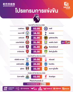 แฟนบอลอังกฤษเตรียมตัวให้พร้อม! เพราะสุดสัปดาห์ วันที่ 23-26 สิงหาคม 2568 นี้ พรีเมียร์ลีกพร้อมระเบิดศึกเดือดทุกมุมสนาม! ตั้งแต่ศึกดาร์บี้ลอนดอนจนถึงบิ๊กแมตช์ชนหัวตาราง!!! โดยสามารถรับชมความมันส์การแข่งขันถ่ายทอดสดครบทุกคู่ผ่านแพลตฟอร์มสตรีมมิ่ง Monomax ได้เต็มอรรถรสทุกแมตซ์!!!