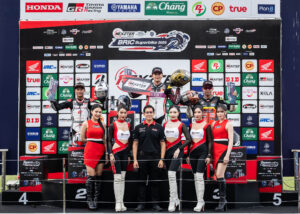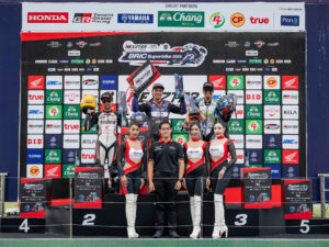 ด้าน “เบนซ์ เรซซิ่ง” อริย์ธัช วรโรจน์เจริญเดช นักบิดคนดังจาก เรปโซล อาร์-ซีรีส์ ทีม ที่ลงแข่งในรุ่น SB2 ยังคงสร้างผลงานยอดเยี่ยมเช่นเคย บิดเข้าป้ายในอันดับ 8 เพียงพอให้ขึ้นโพเดียมอันดับ 2 ได้สำเร็จ และนับเป็นการฉลองโพเดียม 2 สนามติดต่อกัน