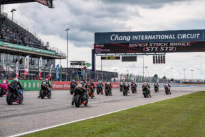 ไฮไลต์ในสุดสัปดาห์นี้อยู่ที่เกมในรุ่นใหญ่ ซูเปอร์ไบค์ 1,000 ซีซี (SB1 Pro) ที่ดุเดือดสมการรอคอยของแฟนความเร็ว โดยแข่งขันกันทั้งสิ้น 12 รอบสนาม ซึ่งกริดสตาร์ตเรซนี้มี “มิกซ์” ธนัช ละอองปลิว ดาวรุ่งสายเลือดใหม่จาก อิเดมิตสึ ฮอนด้า ทีม คริสมาส เป็นเจ้าของโพล ขนาบข้างด้วยแชมป์ประเทศไทยและแชมป์เอเชีย 2 สมัยอย่าง “แสตมป์” อภิวัฒน์ วงศ์ธนานนท์ จาก อีสต์ เอ็นเจที เรซซิ่ง ทีม และจอมเก๋าของไทยอีกคนอย่าง “ซุป” อนุชา นาคเจริญศรี นักบิดประสบการณ์สูงจาก โปร ฮอนด้า บริดจสโตน อันเดรียนี เบนดิกซ์ เอเอ็น เรซซิ่ง ทีม ในกริดที่ 2-3
