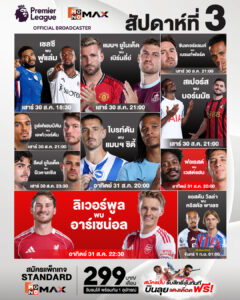 ความมันส์สัปดาห์นี้ยังไม่หยุด!!! วันอาทิตย์ที่ 31 สิงหาคม 2568 เวลา 20.00 น. รับชมทาง Monomax เปิดหัว 2 คู่ใหญ่ “นกนางนวล” ไบรท์ตัน เปิดบ้านต้อนรับ “เรือใบสีฟ้า” แมนเชสเตอร์ ซิตี้ ทีมแชมป์เก่า และคู่ “เจ้าป่า” น็อตติงแฮม ฟอเรสต์ เจอกับ “ขุนค้อน” เวสต์แฮม ยูไนเต็ด จากนั้นถึงเวลาที่ทุกคนรอคอย! 22:30 น. คู่บิ๊กแมตช์แห่งสัปดาห์ “หงส์แดง” ลิเวอร์พูล เปิดแอนฟิลด์ต้อนรับ “ปืนใหญ่” อาร์เซนอล เกมนี้ไม่ใช่แค่ศึกศักดิ์ศรี แต่ยังเป็นบทพิสูจน์เส้นทางลุ้นแชมป์ต้นซีซั่น