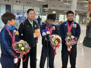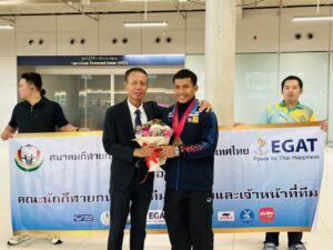 คณะนักกีฬายกน้ำหนักไทย ถึงบ้านเเล้ว “เสธ.ยอด”ต้อนรับอบอุ่น