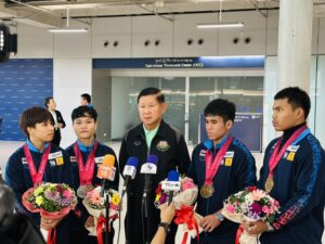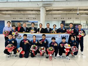คณะนักกีฬายกน้ำหนักทีมชาติไทยชุดสู้ศึกยกน้ำหนักชิงชนะเลิศแห่งโลก ประจำปี 2568 ที่เมืองฟอร์ด ประเทศนอร์เวย์ เดินทางกลับถึงสนามบินสุวรรณภูมิเป็นที่เรียบร้อยแล้ว โดยมี “เสธ.ยอด”พลตรี อินทรัตน์ ยอดบางเตย นายกกิตติมศักดิ์สมาคมกีฬายกน้ำหนักสมัครเล่นแห่งประเทศไทย พร้อมด้วยคณะกรรมการบริหารสมาคมให้การต้อนรับอย่างอบอุ่น