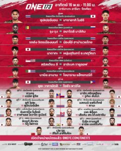 สำหรับศึก ONE 173 พร้อมมอบความมันเต็มพิกัด ด้วยการยกทัพนักกีฬาระดับซูเปอร์สตาร์มาปะทะฝีมือกันมากที่สุดเป็นประวัติการณ์ถึง 16 คู่ บนดินแดนซามูไร โดยมีเข็มขัดแชมป์โลก ONE เป็นเดิมพันมากถึง 7 เส้นในอีเวนต์เดียว โดยมีนักกีฬาสายเลือดไทยตบเท้าเข้าชิงบัลลังก์ถึง 4 คู่