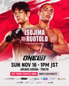 ยกระดับความเดือดขึ้นอย่างไม่มีที่สิ้นสุดสำหรับศึกใหญ่ครั้งประวัติศาสตร์ ONE 173 ที่จะระเบิดความมันขึ้นในวันอาทิตย์ที่ 16 พ.ย. 68 ณ สนาม อาริอาเกะ อารีนา กรุงโตเกียว ประเทศญี่ปุ่น โดยล่าสุดได้ประกบ “โชโสะ อิโซจิมะ” จอมบู๊ไร้พ่ายเจ้าถิ่น มาปะทะกับ “ไท รูโทโล” แชมป์โลก ONE ปล้ำจับล็อก รุ่นเวลเตอร์เวต (170-185 ป.) จากสหรัฐอเมริกา ในกติกา MMA รุ่นไลต์เวต (155-170 ป.)