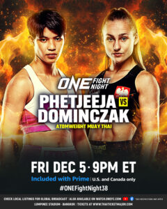 เผยโฉมคู่มวยหญิงสุดเดือดที่จะเข้ามาเสริมทัพความมันให้กับศึก ONE Fight Night 38 ที่จะถ่ายทอดสดจากสนามมวยเวทีลุมพินี (รามอินทรา) ในช่วงไพรม์ไทม์อเมริกา ซึ่งตรงกับช่วงเช้าเวลา 09:00 น. ในวันเสาร์ที่ 6 ธ.ค. 68 โดย “เพชรจีจ้า ลูกเจ้าพ่อโรงต้ม” แชมป์โลก ONE คิกบ็อกซิ่ง รุ่นอะตอมเวต (105-115 ป.) จะพบกับ “มาร์ตินา เคียร์ชินสกา” จอมบู๊สาวจากโปแลนด์ ในกติกามวยไทย รุ่นอะตอมเวต
